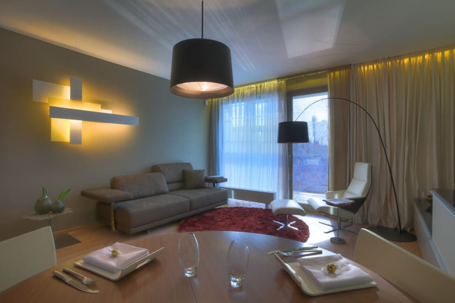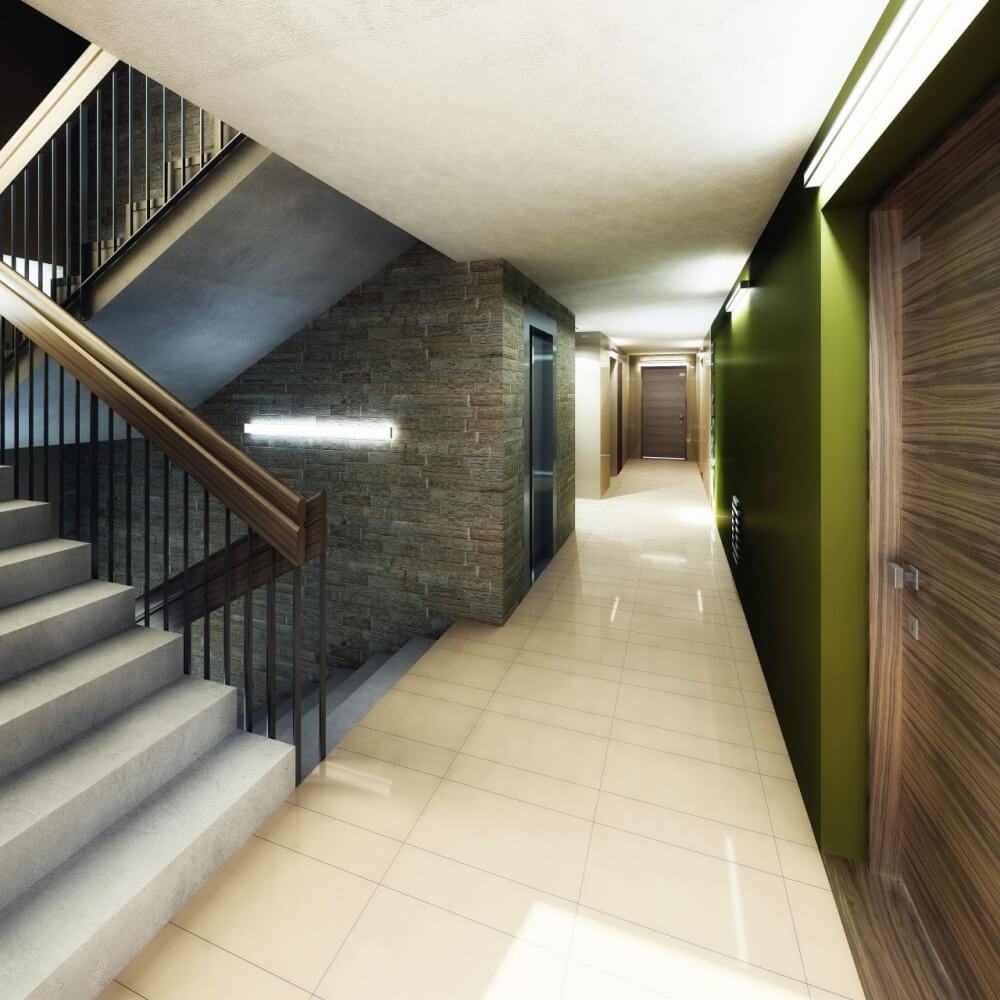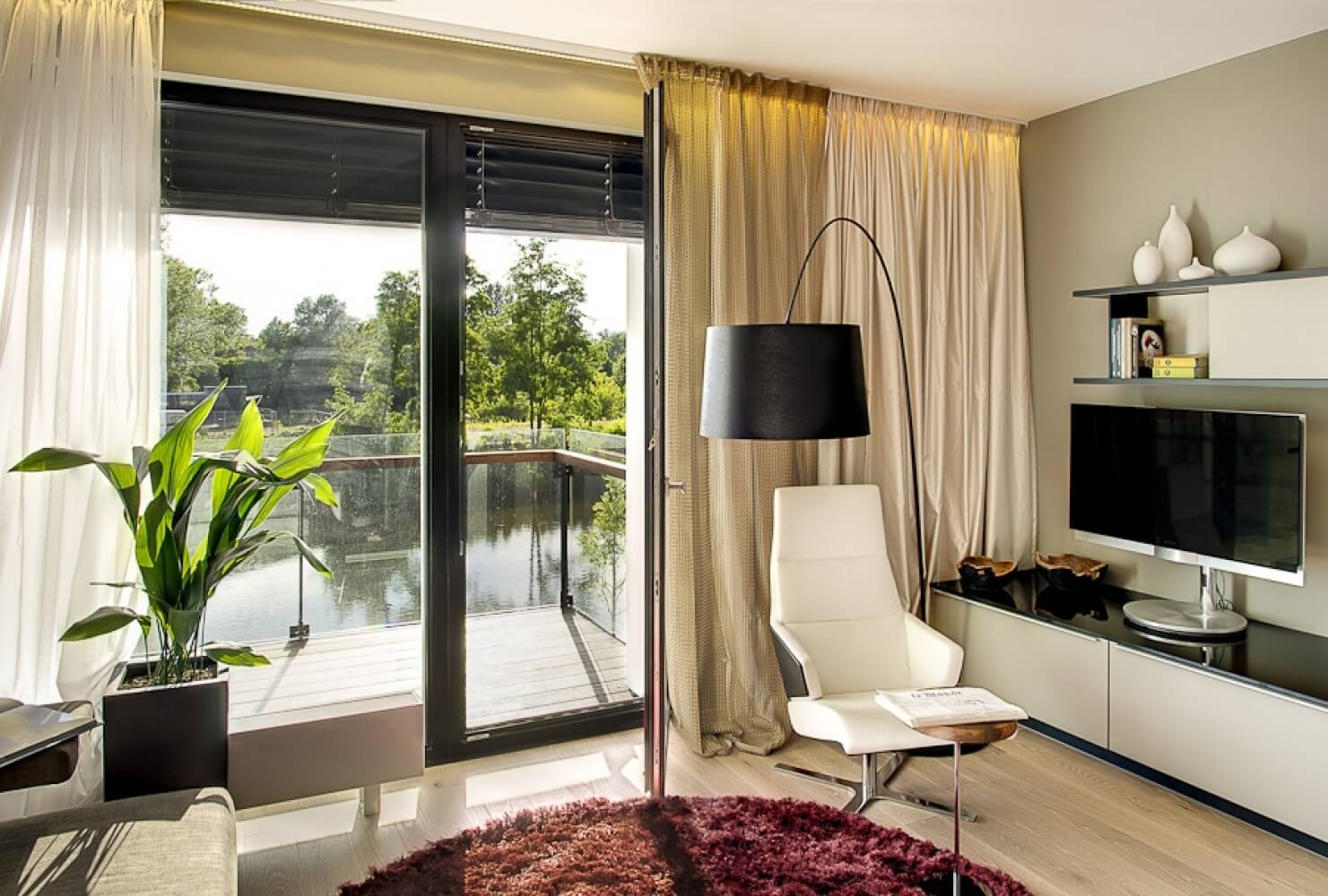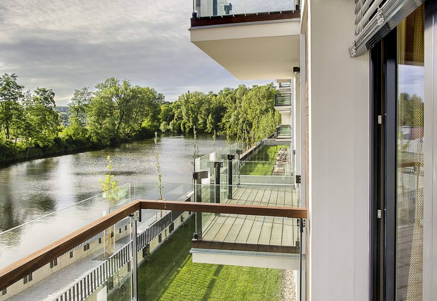 Внешний дизайн. Резиденция жилой комплекс, состоит из 3-х четырехэтажных домов. Фасад будет располагать комбинацией дерево – камень. Отдельные квартиры с видом на реку, в сторону запада. Другие выходят на восток, с видом во внутренний двор. Квартиры, расположенные на первом этаже имеют частные сады. Площадь квартир от 28,8 m² до115,4 m², в размере от 1+kk – 4+kk. Цена парковочного места в гараже от 535.000 крон.