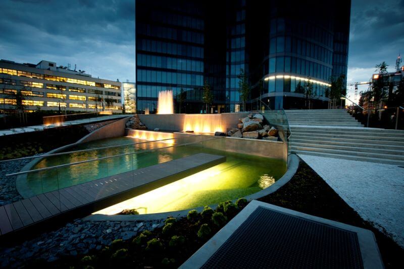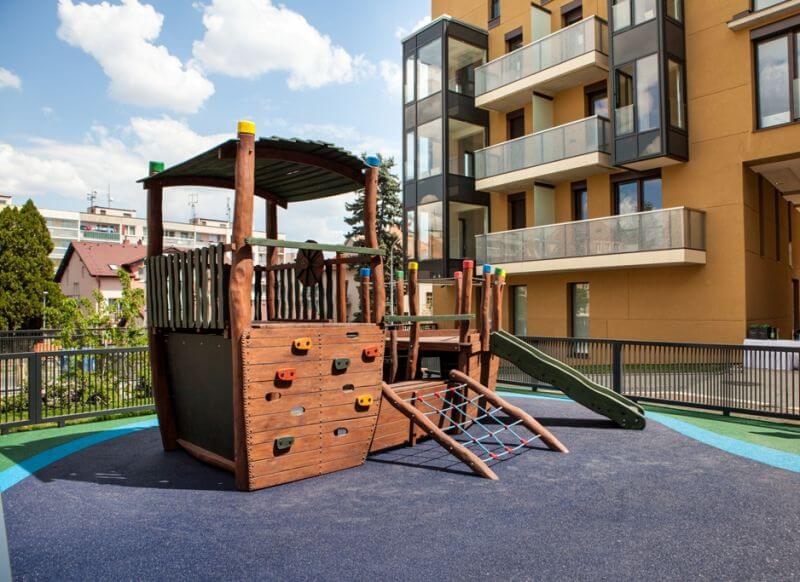 Ареал состоит из комплекса трех отдельных зданий — жилых домов, среди которых создан современный атриум. Уютный благоустроенный двор с детской площадкой и ландшафтным дизайном защищен от шума улиц, охраняется и располагает к приятному отдыху взрослых и детей. С верхних этажей открывается панорамный вид на Прагу.