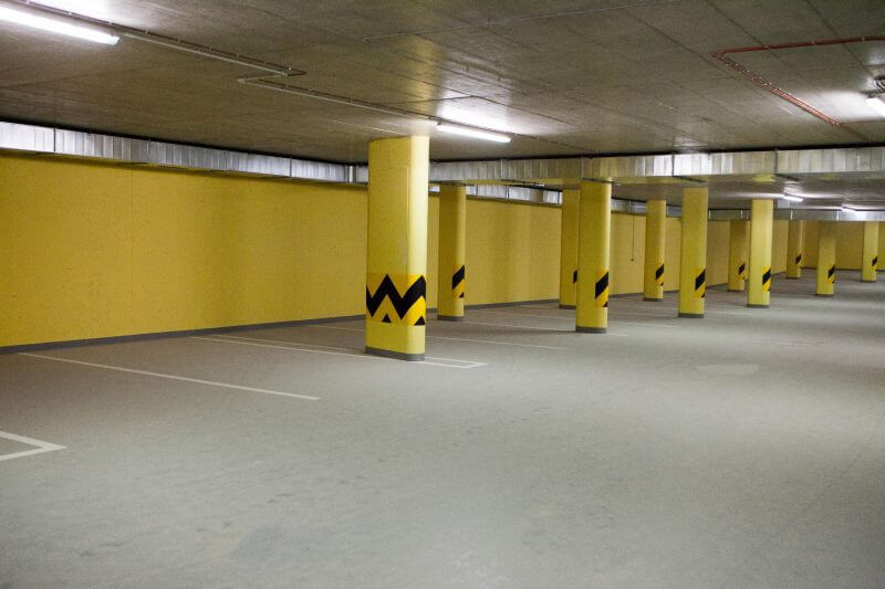 В комплексе расположен двухуровневый подземный паркинг с системой въездов и выездов, а так же кладовые.