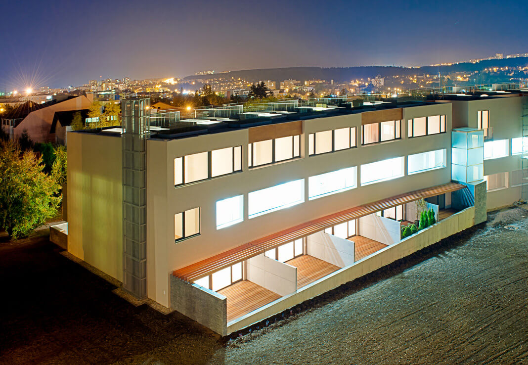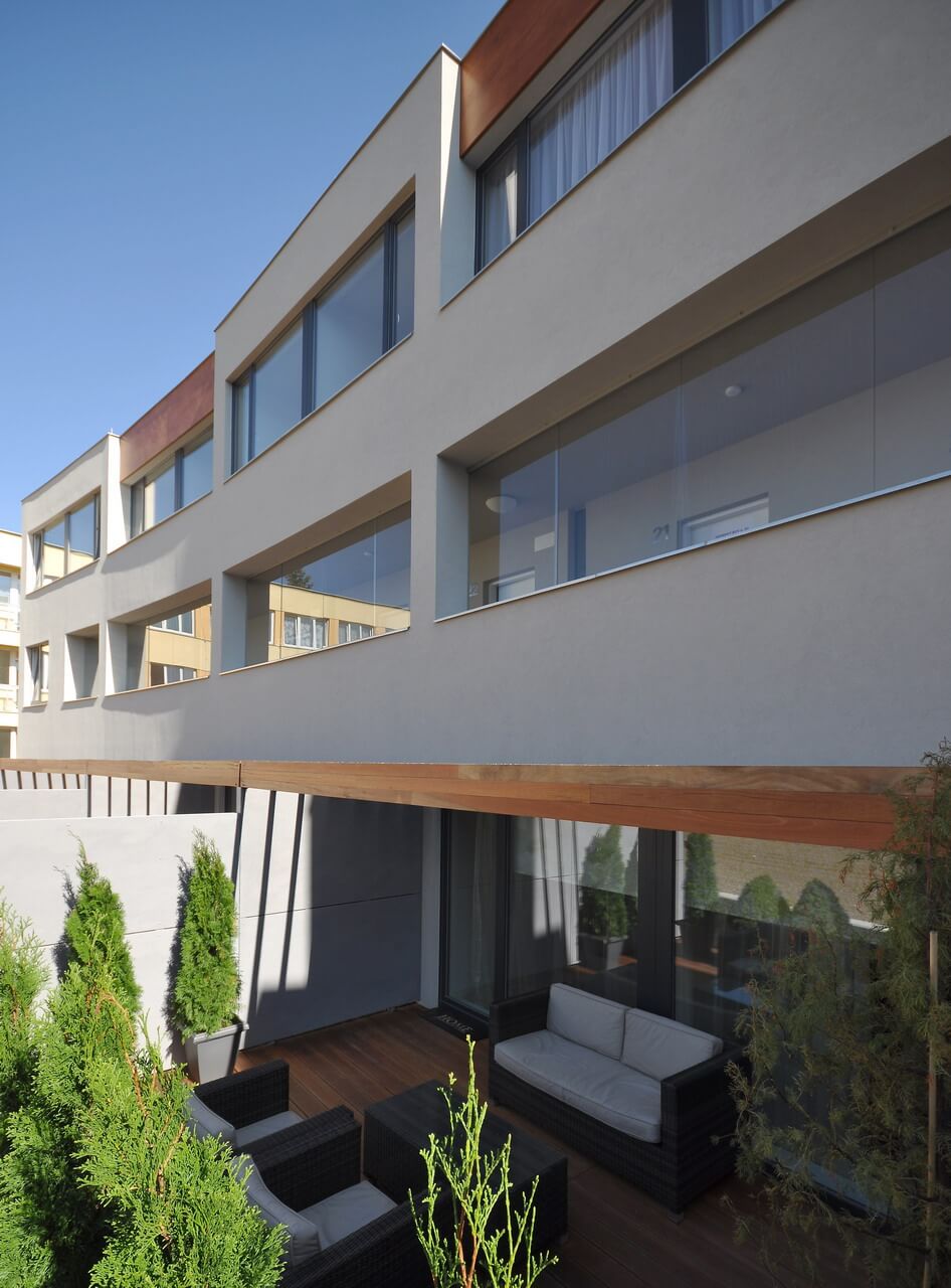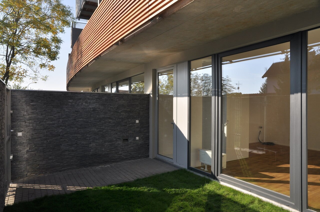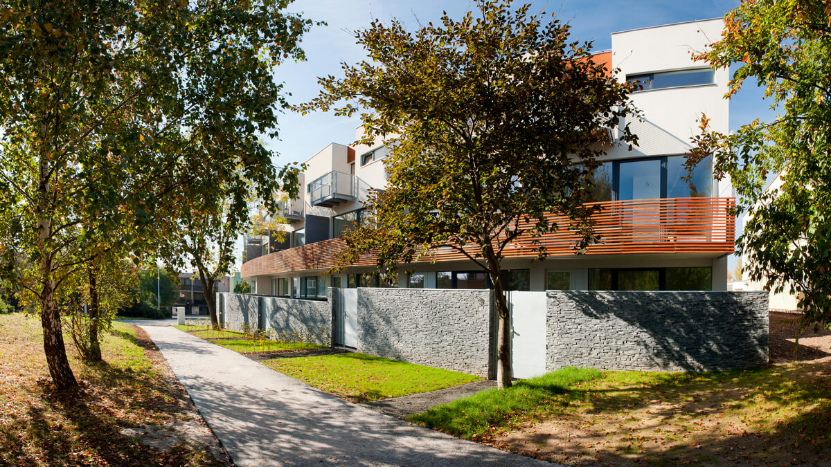 В ареале размещено 27 квартир планировок 1+кк, 2+кк, 3+кк и 4+кк с балконом или террасой, на первых этажах квартиры имеют палисадник.