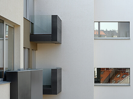 Жилой комплекс состоит из трех соединенных между собой зданий, включающих 74 квартиры площадью от 40 до 150 м². У всех квартир есть балконы, террасы либо палисадники. Из окон квартир на последних этажах зданий открывается панорамный вид на историческую часть города – Старый Город и Пражский Град.